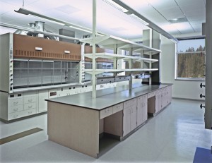 Science Building “J” is composed of distinct chemistry and biology laboratory wings and maximizes efficiency of the building systems and product flow. The final design solution featured shared support rooms and open interactive meeting spaces along a “main street” which joined both laboratory wings.